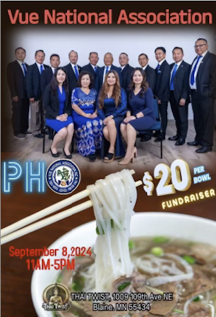 September 8, 2024 @ 11:00 am - 5:00 pm Vue National Pho Fundraiser 2024 Thai Twist Restaurant & Banquet Hall 1009 109th Ave NE, Blaine, United States Thai Twist Restaurant & Banquet Hall1009 109th Ave NEBlaine, MN 55434September 8,2024 11pm -5pm $20.00